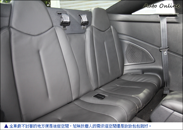 Max大話車壇![]() ▲無窗框的設計讓安全帶的位置相當後面,在沒有輔助裝置的情況之下要配戴安全帶相當不方便。駕馭PEUGEOT RCZ行駛在路上絕對是行人目光的焦點,也成功扮演一台跑車該有的吸睛本分。雖然RCZ的內部空間(尤其是後座)不是那樣充裕,一些細節的質感部分也有提升的空間才不負其186萬的售價,但誰在乎?多數的人僅能站在車外欣賞它美麗的外觀,能坐進RCZ車艙內的除了你之外就只有在副駕駛座上的另一半而已。
