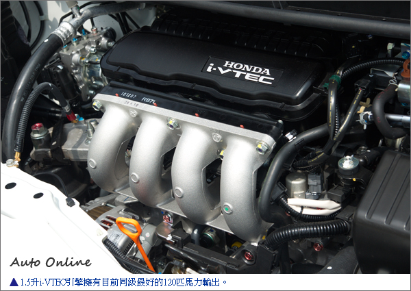 驅策車子的動力心臟仍是之前的1.5升SOHC i-VTEC引擎,120匹的最大馬力輸出也是同級最強。不過最讓人感到愉快的,還是它電子油門所提供的精確反應,動力的輸出可以隨著細微的油門深度來做調整。所以或許以起步的輕快程度來講,各家小車藉由齒比的設定各有千秋,但是在低、中速域的再加速上反應就相當明確,相對之下對手的表現就比較有遲滯且虛了些。