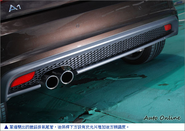 動力提升後,考量到駕駛者的安全,所以周邊配備一併做升級,加大的煞車碟盤、鋁圈輪胎尺寸升級,增加車身穩定性以及制動能力。大幅提升後的A1 Sports為了讓外觀也能有強烈跑格氣息,S line運動化外觀套件也在升級選項內,更有霸氣的前保桿、車身側裙、車側S line銘牌、車尾鋁合金排氣飾管及大型尾翼,讓原本圓潤可愛的A1頓時「硬」了起來。