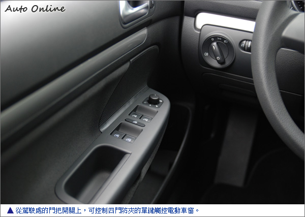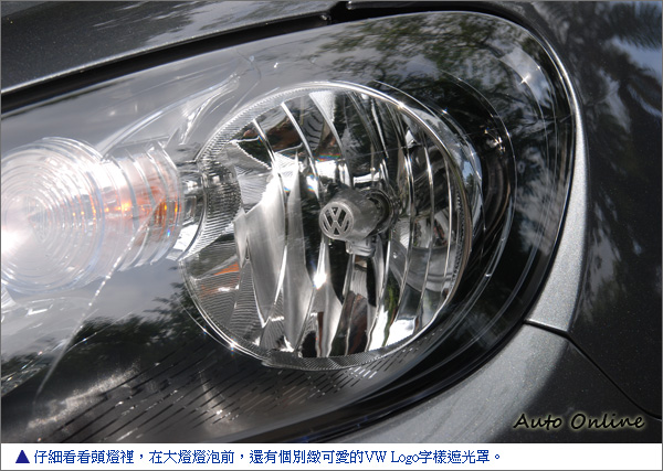 試駕的Golf Variant是太古標達所引進的入門基本款,在未加購選用配備時,其售價為101.8萬元,雖然在配備上略嫌簡單,不過價格確實吸引人。大燈組可選購包含LED日間行車燈、遠近雙HID燈的頭燈組;試駕車上配備的是一般的鹵素燈組,一樣也具有日間行車燈功能,與安全相關的配備Golf Variant可是沒有漏掉。仔細看看頭燈裡,在大燈燈泡前,還有個別緻可愛的VW Logo字樣遮光罩。