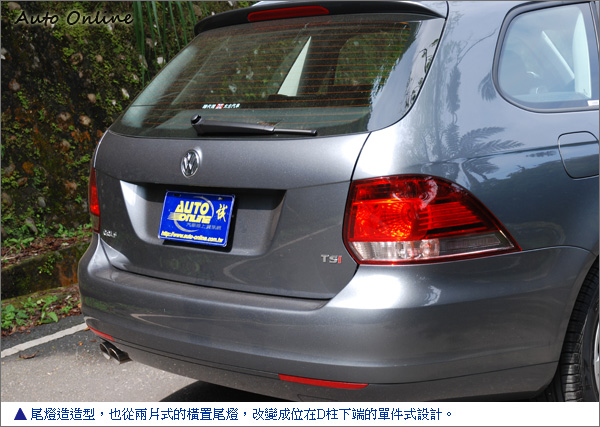 車尾則是Golf Variant最不Golf的地方,捨棄這代Golf俐落的線條,改採較優雅的設計風格。略為後傾的尾門,維持了Golf尾門的掀背感覺。尾燈造造型,也從兩片式的橫置尾燈,改變成位在D柱下端的單件式設計。有可能就是這樣的改變,讓Golf Variant不再像Golf。