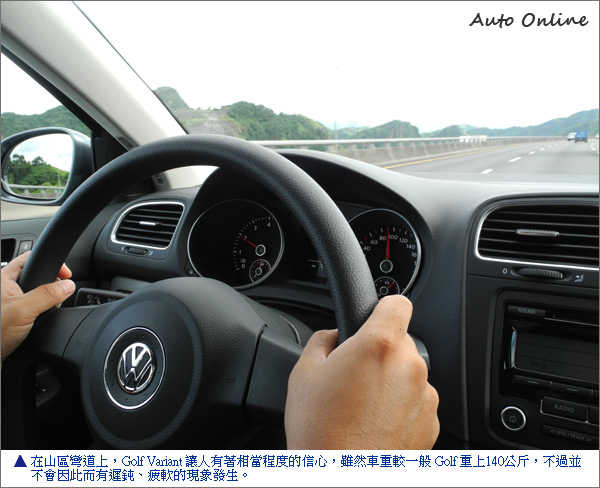 然而,Golf Variant自然也承襲這樣的車輛性能。在山區彎道上,Golf Variant的過彎實力,讓人有著相當程度的信心,雖然車重較一般Golf重上140公斤,不過Golf Variant並不會因此而有遲鈍、疲軟的現象發生。