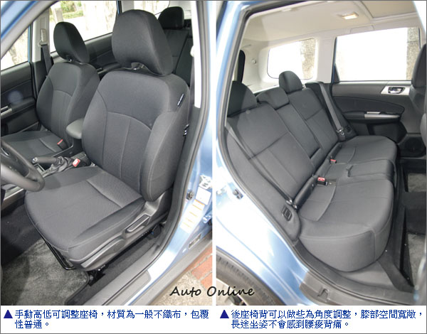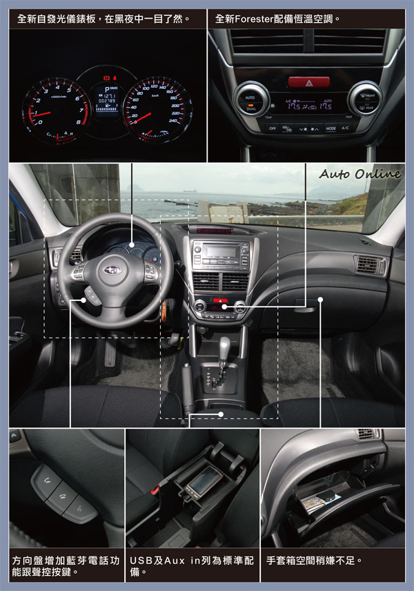 日本富士重工有著自家一套造車工藝,有別於德國車系的風格,試駕這台2011年全新式樣Forester搭配第三代水平對臥引擎,筆者剛好也試駕過使用前一代引擎的Forester,說實在兩者整體感覺差異不大,使用第三代水平對臥引擎的Forester,在起步時油門感覺稍稍輕快點,至於在中、尾速後反應不會差太多。只是讓人詬病的4速自排依舊存在,小編打聽有關以後會不會配置更高檔的變速系統,台灣意美的公關表示,日本SUBARU很有可能會把現行Legacy所搭載的無段變速箱套用在Forester上,這點讓小編非常期待搭載無段變速箱與第三代水平對臥引擎合體後的Forester會有什麼驚人表現。
