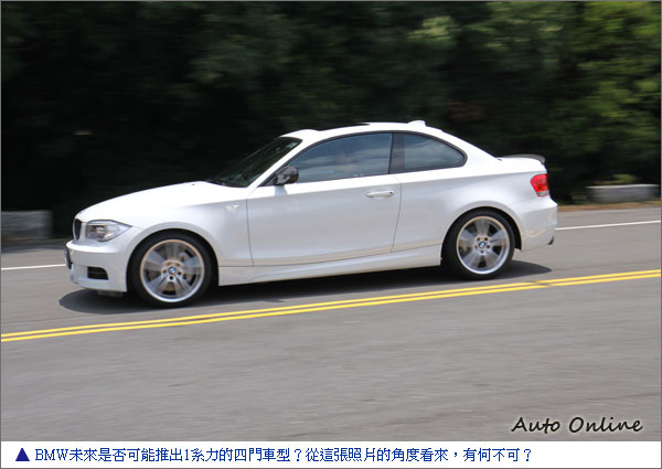 小型雙門跑車應該要有怎樣的樣貌?若把這款車直接改成四門,認誰都不會覺得有何奇怪,甚至我們認為以它目前的前後比例,作為Sedan會比Coupe更好看。當初BMW以無比的勇氣打造一部雙門Coupe車,接下來又戲劇性地據此擴充M家族的產品陣線,讓人不禁懷疑:1系列Coupe存在的意義是否只是為了成為1系列M Coupe的墊腳石?