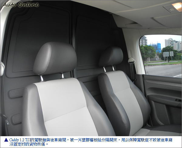 貨車等級的大載貨空間![]() VW Caddy 1.2 TSI有著近似VW Golf的駕駛空間,有著實用硬派的駕駛座艙、符合人體工學的操控介面、清晰易讀的儀表設計,這些都算是VW的德式風格吧!不過一進入Caddy 1.2 TSI的駕駛艙,你會發現其前座與後車廂被一片塑膠檔板給分隔開來,形成Caddy 1.2 TSI僅能乘坐兩人的駕駛空間。