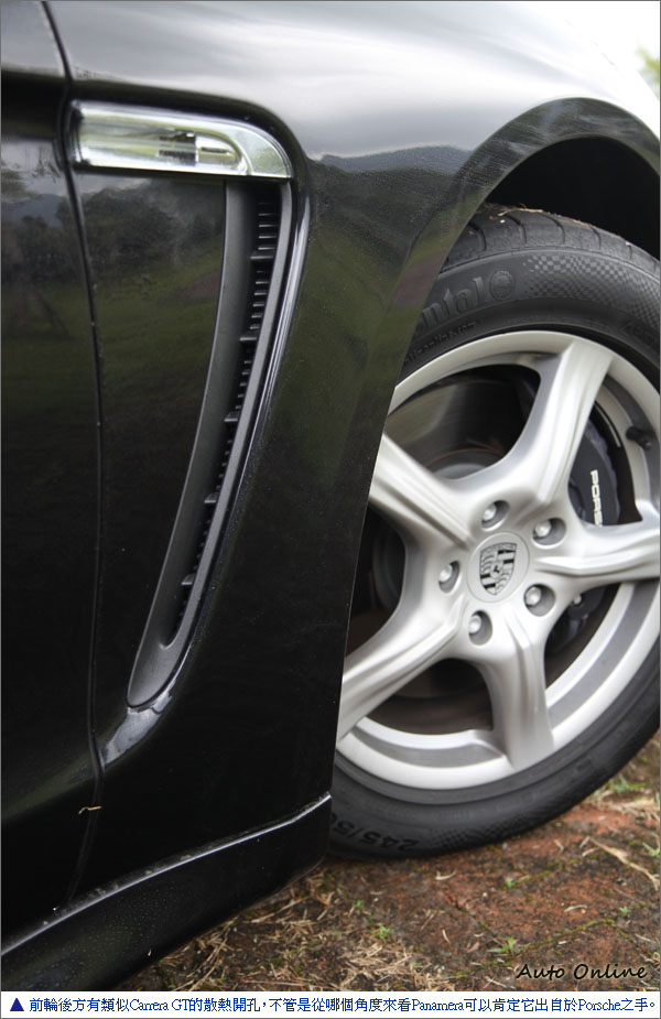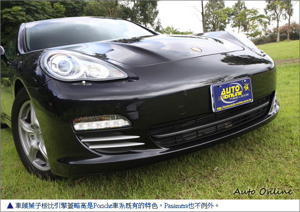 雖然Panamera是一部接近3米的大型豪華房車,它完全承襲Porsche該有的家族特色,定睛仔細看Panamera的外觀,感覺有點像是拉長的911。車頭葉子板比引擎蓋略高是Porsche車系既有的特色,Panamera也不例外。從C柱直接傾斜的線條加上充滿肌肉線條的後輪拱,脫離不了Porsche該有的外觀設計。值得一提的是在前輪後方有類似Carrera GT的散熱開孔,不管是從哪個角度來觀看Panamera都可以很肯定它是出自於Porsche之手。
