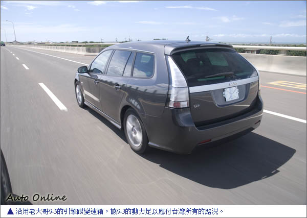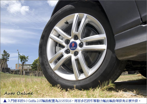 懸吊偏向舒適 不適宜激烈操駕![]() ▲SAAB 9-3 Griffin五門車型比四門車型更有味道。試駕車為SAAB 9-3 Griffin 2.0T前驅版本,很可惜沒有辦法體驗到SAAB最自豪的四驅底盤系統,但以SAAB打造底盤的功力前驅版本的操駕樂趣想必也不會太差。前懸吊為麥花臣加上鋁合金下A臂,後面Re-Axle四連桿,高科技的底盤結構增加車輛行駛的穩定性。為了要跟性能版本Aero作區別,所以9-3 Griffin 2.0T的懸吊設定偏向舒適,在高速巡航時還感受不到懸吊偏軟,設定偏軟的懸吊在經過高速公路伸縮縫幾乎可以吸收掉80%的震動;但是高速切換車道車身的飄浮感會讓駕駛直接反應放慢車速,在山道過彎的側傾也非常明顯。公關表示,為了要跟性能版本的Aero Griffin 9-3有所不同,所以特地搭配較舒適的避震器阻尼,可以讓入門版9-3有舒適的乘坐感受更容易被消費者所接受。