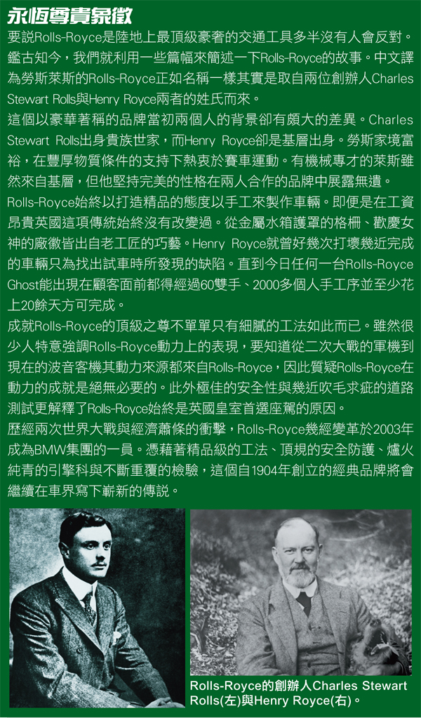 短短一句話聽來帶點傲氣,但其實也一語道破Rolls-Royce始終把自己目光放在更高一層的位階。我不認為用數據或是價格來評論Rolls-Royce是有意義的。如同一幅畫作一樣,真正的價值不再於那一長串的阿拉伯數字,而在於你追求的究竟是一種什麼樣的生活態度。