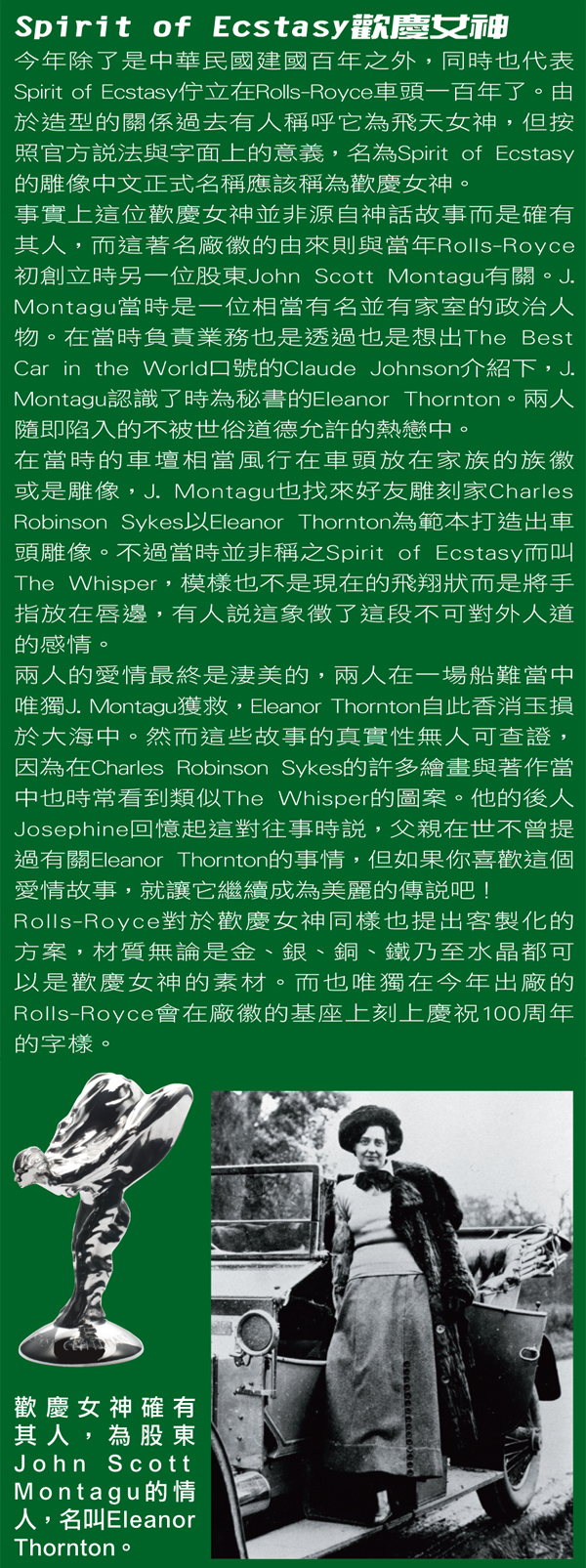 過去在試車報導中總不免俗的要提到馬力、扭力等數據。但一直到撰寫報導時我問我自己這些對Rolls-Royce重要嗎?對於這些買家來說,Rolls-Royce帶給他的意義又是為何?回程中我反覆咀嚼著公關在試車過程中對我說的一句話。他說:其它車廠總積極地告訴你他在車上裝了多好又多高檔的配備,但Rolls-Royce從不如此,因為不是最好的不會出現在Rolls-Royce上。