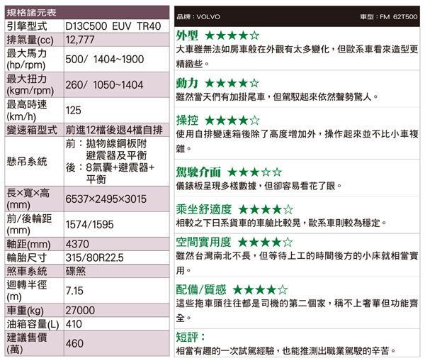 由於這類的大型拖車一般不像轎車容易有機會接觸,一是汽車編輯沒事不會去考張曳引車或是大貨車駕照。而對總代理來說這些車款早就業者被訂購,因此除了跟民間業者商借外基本上要談試駕相當不容易。