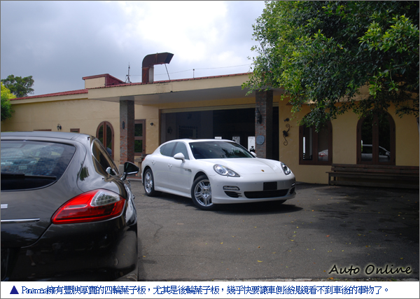 沿續PORSCHE跑車的DNA,Panamera擁有豐腴厚實的四輪葉子板,尤其是後輪葉子板,幾乎都要讓車側後視鏡看不到車後的事物了。明顯擴張充滿肌力的葉子板,除了加寬輪距用途外,還兼具導引空氣散熱的功能。