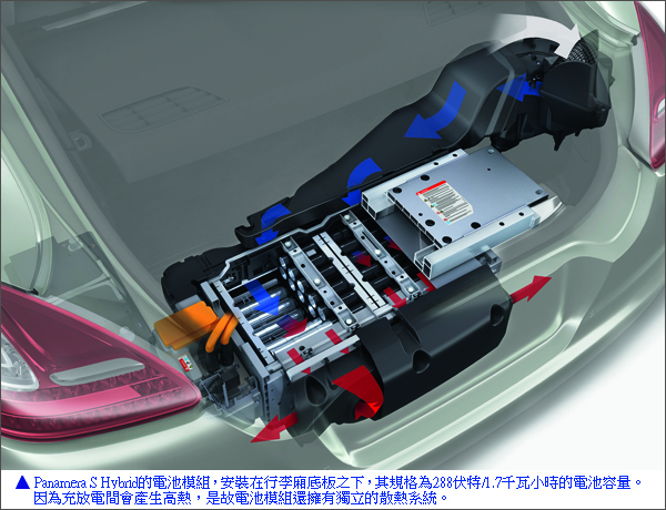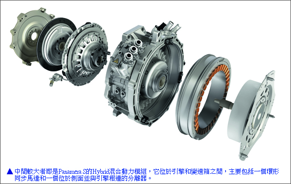 ▲彩色部份則是Panamera S Hybrid混合動力系統。