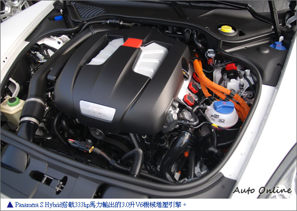 Panamera S Hybrid的動力主要是依賴一具輸出功率達333hp的3.0升V6機械增壓引擎,再輔以一具輸出功率為47hp的同步電動馬達,整個動力系統的總輸出功率則為380hp,這相當於Panamera S的動力輸出,是故在Panamera S Hybrid名稱中,冠上性能車S的代號。