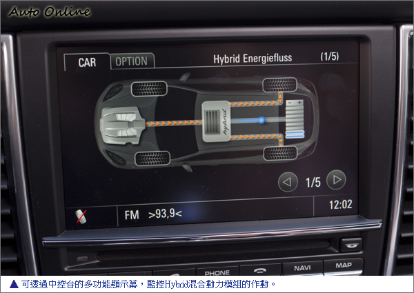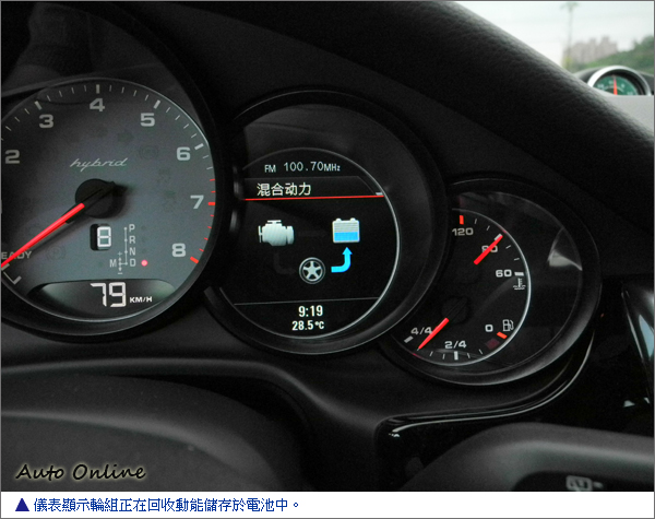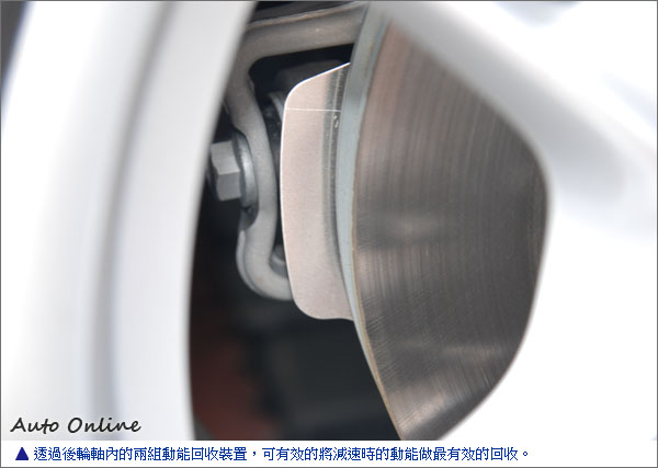 除了引擎對電池的充電外,透過引擎無負載時,兩後輪軸配置的動能回收系統,能在減速時或是傳動轉速大於馬達轉速時,回充電能於後行李廂下的電池模組中,待需要時為驅動馬達供電提供額外的動能給Panamera S Hybrid。由於動能回收的效能極高,因此Panamera S Hybrid也不必像其他廠牌的Hybrid車款,背上體積大、重量重的電池模組,這點在試駕的過程中,即可很清楚的感受到這項優勢。
