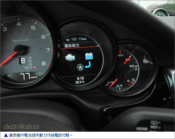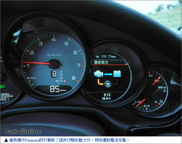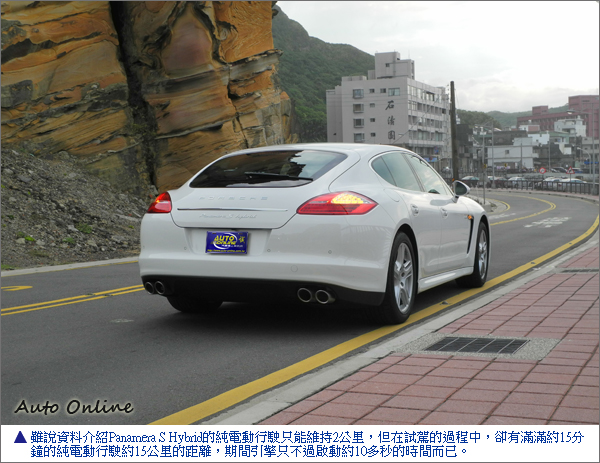 雖說資料介紹中,Panamera S Hybrid的純電動行駛只能維持2公里,但在試駕的過程中,卻有滿滿約15分鐘的純電動行駛約15公里的距離,期間引擎只不過啟動約10多秒的時間而已吧,其餘時間絕對只由電動馬達負責驅動。