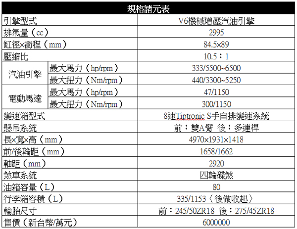 並聯式的Hybrid混合動力系統,除了提供PORSCHE特有的加速性能和靈活性外,另一項優點則是它僅需較小的空間,主要原因在於整個Hybrid混合動力模組非常緊湊,長度僅為147.5 mm。它位於引擎和變速箱之間,主要包括一個環形同步馬達和一個位於側面並與引擎相連的分離器。因此,其動力分配和特性都與傳統驅動裝置相同。PORSCHE的Hybrid混合動力裝置,造成的車重增加的負擔也相對較小。