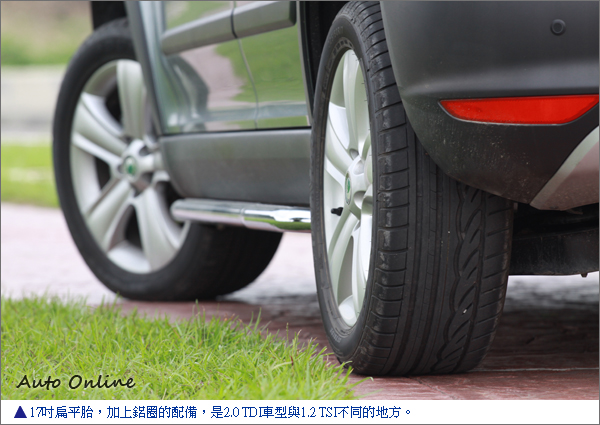 ![]() ▲整部車最漂亮的角度,當屬後方45度角,Yeti擁有不同於一般SUV的氣質。Yeti 1.2 TSI的售價現在已經調漲為94.8萬了,而和2.0 TDI的價差達到30萬,原因主要還是在引擎、變速箱及傳動系統,以及少數的配備差異。從配備上來看,可以發現2.0升車型的外觀多了淺色隔熱玻璃、17吋鋁圈,內裝則有定速巡航系統、多功能三幅式方向盤、後座三頭枕與駕駛側的膝部氣囊等,另外音響等級也較高,升級為2-DIN主機,但全景天窗和1.2升車型一樣,仍是選配。