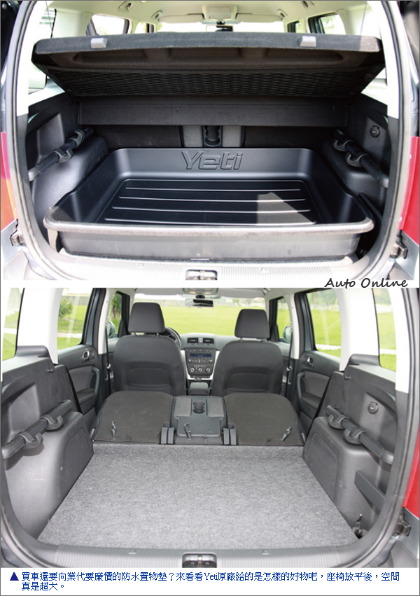 ![]() ▲Yeti設計本意,不僅要它能馳騁公路,也要綜橫山林之間。雖然我們習慣以都會跨界車來形容Yeti,不過原廠從設計階段就希望開發出一款可在山林雪地中自由來去的休旅車,因此擁有4WD的Yeti應該才稱得上是真正符合原始理念的產品,也才能和車名「雪人」相配。和Romster一樣,Yeti也是主打休閒的車型,因此在RV機能上特別強調,空間表現也成為它的重要賣點。