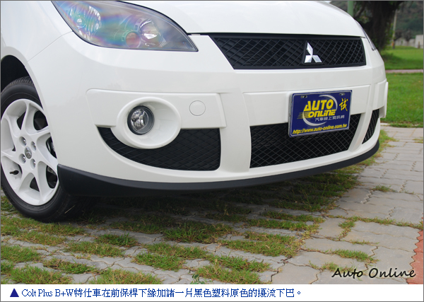 Colt Plus B+W特仕車,是以iO車款為依據,增減配備後的衍生車款,因此可看到在外觀上明顯有著iO風格的外觀,不過,在前後保桿下緣的擾流套件以及兩側的側裙,均採黑色的塑料原色,讓Colt Plus B+W特仕車,也能擁有90年代左右歐系車特有的風采。