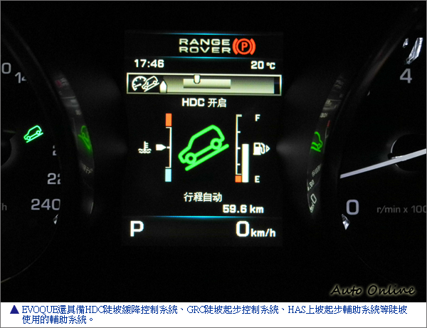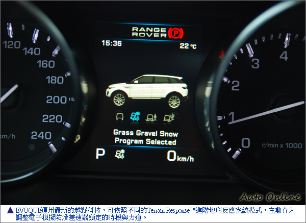 如此一來懸吊偏重於道路上性能表現的同時,即表示RANGE ROVER EVOQUE的懸吊不適合越野時的表現;不過,這話只說對了一半,RANGE ROVER EVOQUE的懸吊的確無法在面對越野地形時形成大落差的角度,無法讓輪胎保有足夠的抓地力。