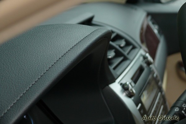 在車室中控台上方披覆的飾板,首見施以車縫線的處理,讓CAMRY儀表上方的飾板,也能夠有真皮的質感。在車室內的各項開關,TOYOTA也運用人體工學設計,讓CAMRY無論是中控台、方向盤上的按鍵均可無須改變駕駛姿勢,又可更省力簡易的操作。