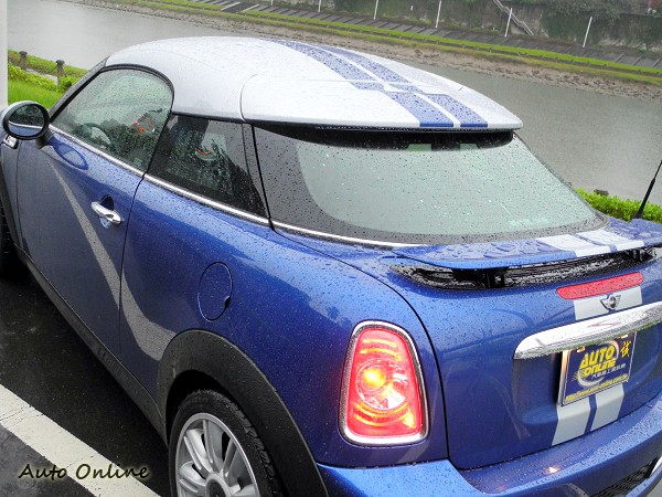 MINI Coupe是MINI家族中首位的雙座跑車成員,其保留了MINI的設計精隨,即使降低了車身高度及從來未有的雙人座位設計,還是可讓人一眼即看出MINI家族的濃厚跑車氣勢。 ![]() ▲全新頭盔式概念設計的車頂,是MINI Coupe獨具的外觀特色。傾斜13°的前擋風玻璃與全新頭盔式概念設計的車頂,兩者搭配協調順暢,看起來就像是一體成型的設計。延伸至車頂後擾流尾翼的車頂線條,極具動感與視覺設計的美感,不只符合最佳化的空氣力學原理,還設計出精實剽悍的MINI跑車形象。 ![]() ▲車頂後緣以及行李廂蓋上均設有擾流尾翼。除了車頂後緣的擾流尾翼外,MINI Coupe還設計了一可自動升降的小尾翼在行李廂蓋上。當時速車過80公里時,這小尾翼便會自行升起,而時速降至60公里之內時,小尾翼便會自動收藏起來。MINI Coupe短小可愛的車尾設計,讓MINI家族第一次擁有了獨立的行李廂空間。