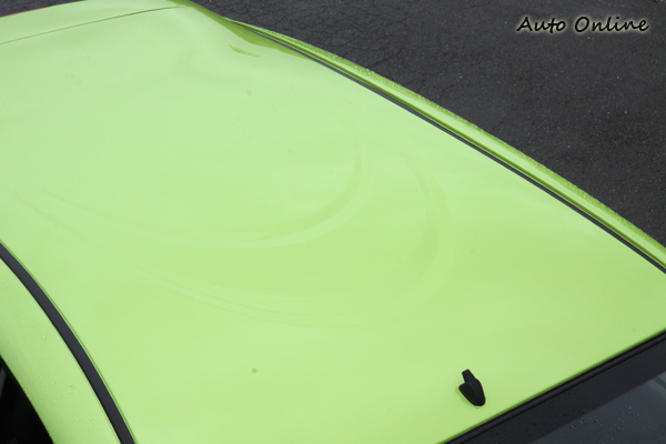 ▲車頂上的箭型凹槽官方說有降低大鈑件發出共鳴升的效果,推測其原理應該跟錄音室鋪設不規則隔音棉的道理一樣。