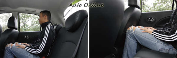▲在身高182cm比例尺先生的實測下,March後座頭部空間表現良好,膝部空間就屬極限了。
