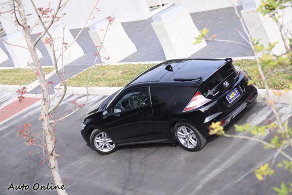 車頂採用全景式玻璃大型天窗,為了車體結構考量無法開啟,從車內可以透過天窗欣賞無遮蔽的美景。車尾擋風玻璃後直接向下的線條,完全來自於CR-X,但這特殊的設計除了用在CR-Z上之外,之前的Insight也同樣有相同的設計。