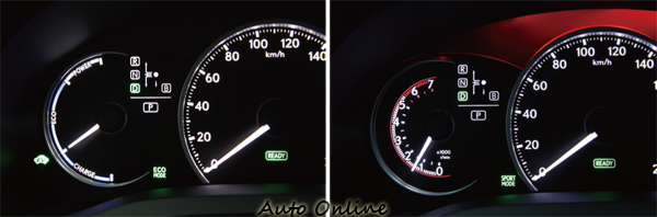 ▲不同駕駛模式下,儀錶會自動切換不同型式的類比指針與顏色。