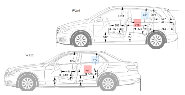 ![]() ▲走入第二代的W246車型車身高度降低47mm,為保有過去受好評的高坐姿視野,原廠在座位的高度做了調整。![]() ▲為了讓前驅車款有更好的迴轉半徑,B-Class雖然軸距縮短但坐進182公分的乘客後座空間仍不至於太擁擠。![]() ▲標配的皮椅及展現出相當不錯的質感,也有多種顏色可選。![]() ▲原廠以自家的E系列對照,新的B-Class雖然軸距減少,但後座腿部以及頭部空間依然相當充裕。
