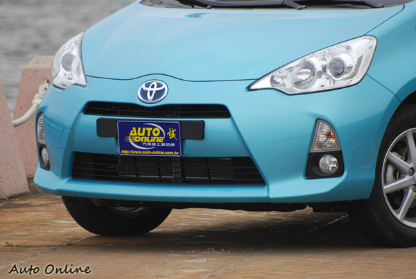 ▲Prius C擁有梯形連成一氣的水箱護罩/保桿氣壩以及引擎蓋上隨著車首廠徽突起的曲線。