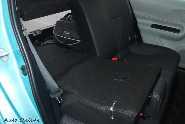 ▲可調整的椅背傾角,可讓後座乘員調整最佳化的乘坐姿勢。6/4分離的後座椅設計,讓Prius C的空間更加靈活多用。