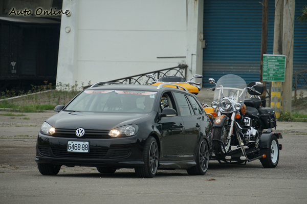 ▲除了試駕車款的Passat Variant,當天還安排了Golf Variant拖曳哈雷機車。