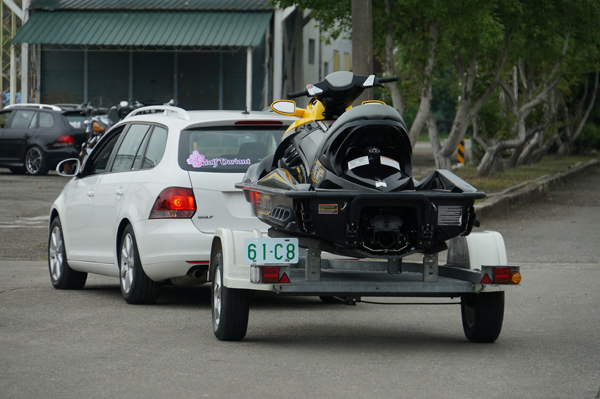 另外,在這次活動太古標達還商借附掛拖車拖曳重型摩托車、水上摩托車供媒體拍照。其實附掛拖車在台灣不常見,但是在歐美,路上很常看到貨卡後方拖著快艇的畫面,悠閒的假日拖著自己的快艇到湖邊遊憩,反觀台灣這樣的畫面幾乎沒看過。其實不管是轎車、休旅車、貨卡或者旅行車,後方都是可以拖曳拖車,只需要拿原本車輛的行照以及擬安裝之連接裝置合格報告就能到當地監理站申請。而小型車後方可附掛之拖車重量不得超過車重之百分之九十與110kg的總和,只要在這規定範圍內就能合法上路,任何路段都能行駛。