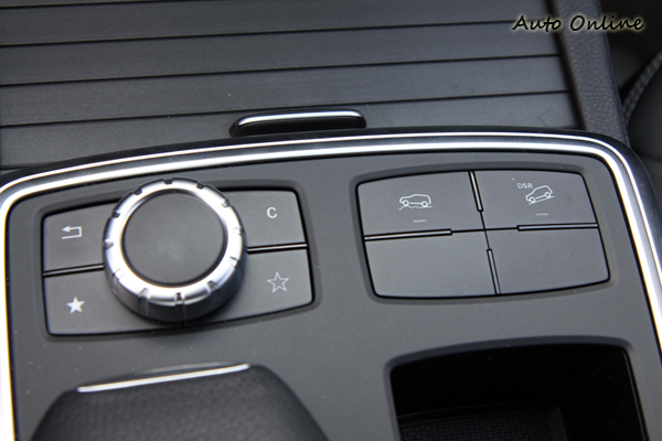 ▲左方的旋鈕是控制多媒體系統選單,右方的DSR則是下坡車速控制系統。