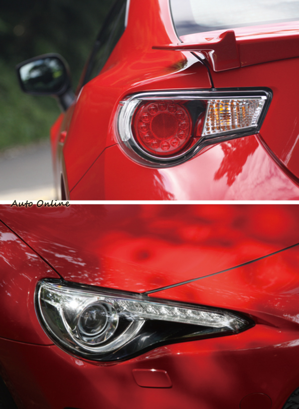 和其他TOYOTA車款相同,車頭是整部車外型比較不耐看的地方,細看頭燈才發現尾燈之所以如此設計的由來。試駕車沒有裝配全車空力套件,應該是 Limited車型,因此整個前臉欠缺銳利而侵略性的元素來裝飾,說白話點,就是看起來會稍嫌不夠暴力。