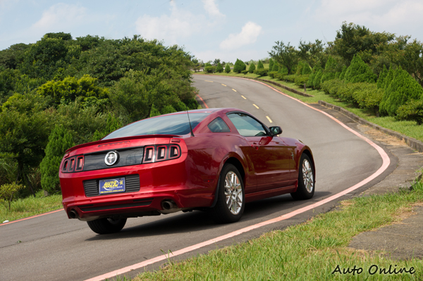 儘管有著又大又長的車頭,不過福特的工程師很努力地讓它的車身前後重量分配比達到很平衡的54:46,過彎時並沒有預期般的「推頭」,令筆者有點小驚喜。方向盤轉動的手感很中性,不會過重或過輕,所搭載的這套EPAS可調式電子動力輔助轉向系統具有標準、運動與舒適三種模式,所以需要更重手的手感和路感回饋可以選擇運動模式,反之則可選擇舒適模式,不過筆者認為標準模式已經適用於大部分的駕駛狀況。 Mustang的轉向性質其實應該是中性略偏不足(understeer)傾向,轉向感覺中性而不犀利,其前獨立麥花臣、後三連桿設計的懸吊系統強項也在於維持過彎時車尾的穩定度,對於車身側傾有不錯的抑制效果,但減震阻尼的設定又比歐日系跑車軟些。簡單來說,Mustang面對山道中低速彎時給駕駛者的信心度不錯,卻不見得像歐日對手如刀鋒切豆腐般地銳利,高速彎道場地才是更適合它大展身手的環境。
