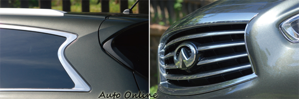 第一眼看到JX35,很難不注意到車頭粗厚的鍍鉻雙拱形水箱護罩,還有特殊的D柱“Σ”造型,讓原本沒有過多複雜線條的輪廓,也能呈現出INFINITI一貫的力量感。
