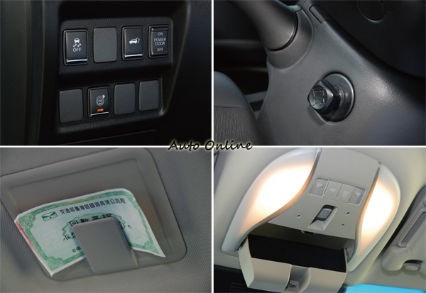 ▲JX35的配備等級相當豐富,內裝雖然不算細緻與華麗,但有許多實用的小設計,譬如遮陽板上的票夾與眼鏡盒,電動調整的方向盤也能讓人隨時微調坐姿。