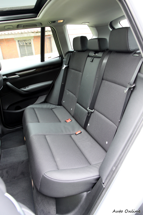 藉著放大的車身尺碼,營造出X3有寬廣的車室空間,2,810mm的軸距放眼望去是同級車之冠,使其後座腿部、手肘空間亮眼;後座還有獨立的冷氣出門孔,在炎炎夏日有極佳的冷房效果。