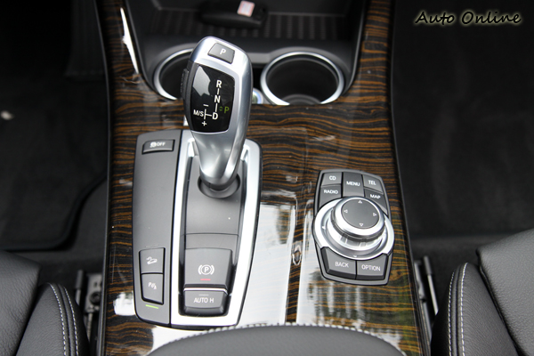 ▲BMW家族特色的排檔桿造型,以及旁邊有iDrive系統的控制旋鈕,在2012年4月所生產的X3 xDrive20d在排檔桿旁邊會有動態行車模式切換開關。