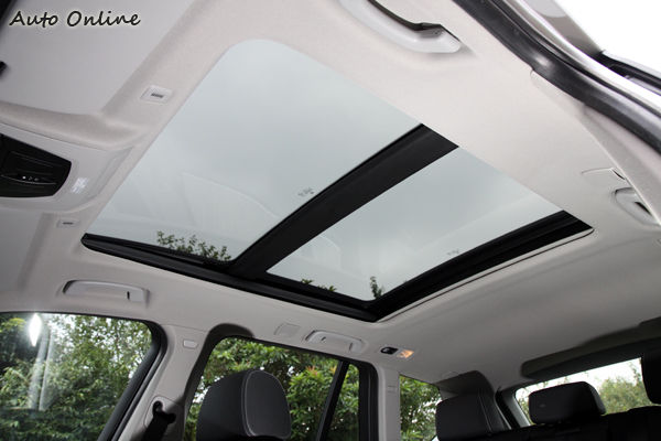 ▲全景式天窗只提供觀賞並無開啟功能,這樣的設計也降低頭部的壓迫感。