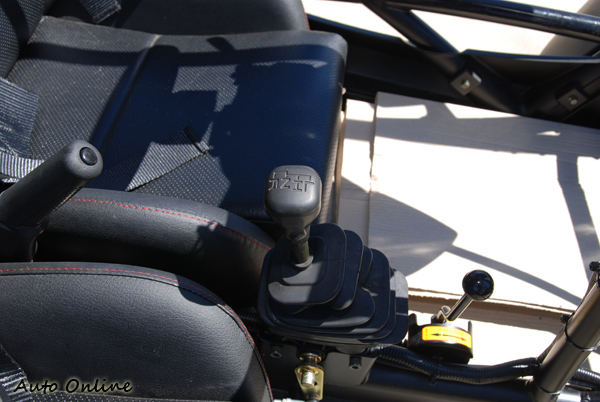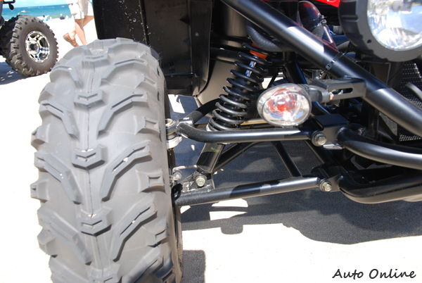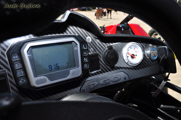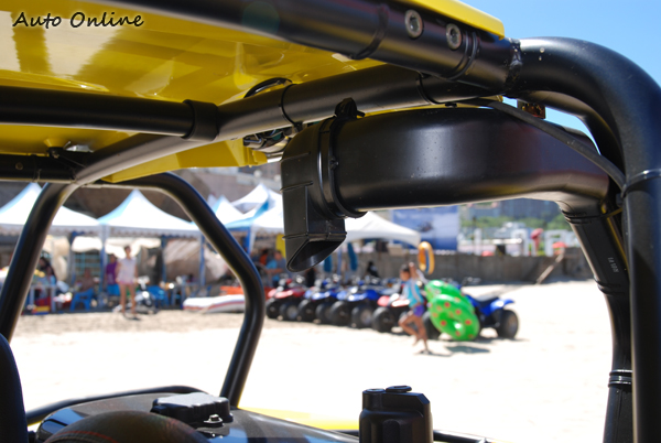 簡單玩樂![]() ▲跟卡丁車一樣的配置,右腳控制油門,左腳則是煞車。BUG Racer 的車身結構簡單,操作方式也不難。由於該車採用的是CVT變速箱,因此它不需要踩離合器。而它的踏板模式基本上就和卡丁車一樣,右腳控制油門,左腳則是控制煞車。 ![]() ▲右上角為跳台警示燈,這是PGO所發明的專利用意在於當車輪懸空時車輛會切斷動力來源,避免瞬間著地時傷害到傳動軸。![]() ▲為了避免進水熄火,BUG Racer的進氣管特別拉高!![]() ▲除了四輪碟煞之外,前面採用的是雙A臂懸吊配置。