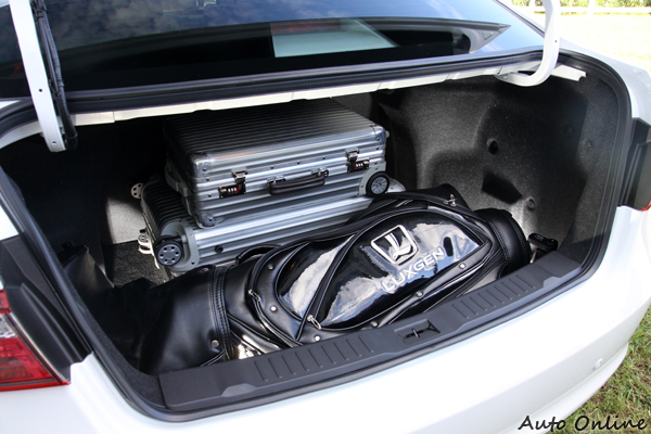 ![]() ▲前座座椅泡棉軟硬適中,對於標榜跑格的LUXGEN5 Sedan包覆性稍嫌不足。![]() ▲後座乘客有足夠的膝部空間可以活動,椅背的角度不會感到不適,受限於車頂的線條影響,讓後座乘客頭部有些壓迫感。![]() ▲寬敞的行李廂空間,可以放進一大一小旅行箱以及一組高爾夫球具。