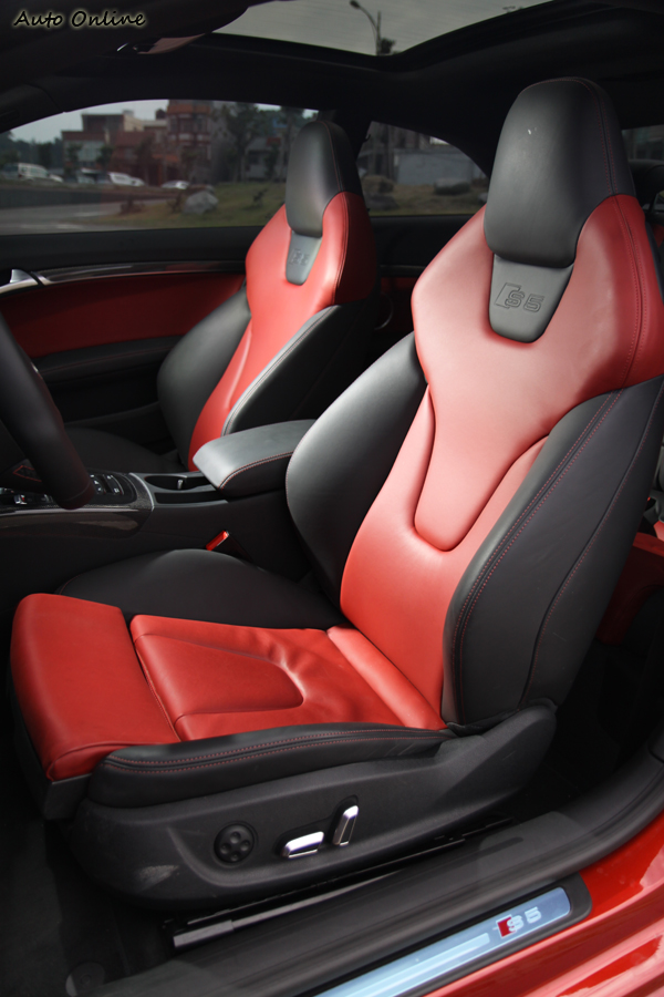 ▲包覆性與質感俱佳的座椅,頭枕處有S5的專屬字樣。