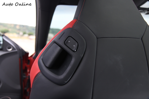 ▲Coupe車型後座在熄火狀態時可以透過椅背上這組按鈕把座椅往前調整方便進出。