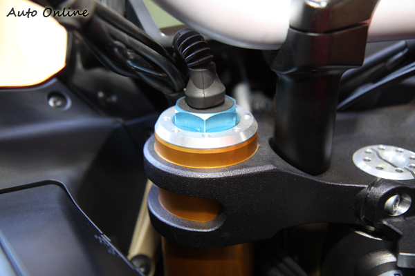 ▲前叉上方多了條電線,代表這台車所使用的是Ohlins的電子式懸吊系統。