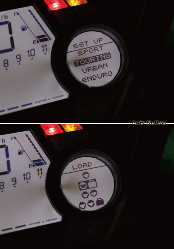 況且每種模式還可以進入選單進行4級的懸吊設定,如有沒有載人,有沒有配戴行李都可以做出更細緻的調整,因此雖然車輛只能用設定好的程式調整車輛,但藉由細膩的分項選擇,相信大家可以找到最適合自己的騎乘設定。