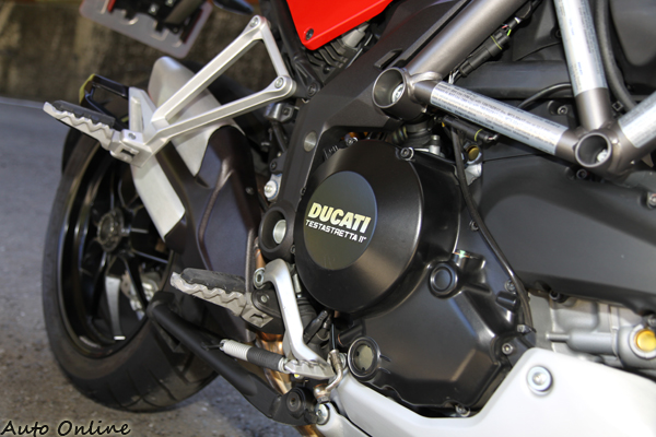 MULTISTRADA 的動力核心源自緣當家跑車1198的引擎,不過藉由濕式離合器與多項周邊的調整之後,新的MULTISTRADA 1200 S變得更順暢也更好騎。車輛依舊保有雙缸車特有的震動,但已經不再像過去的DUCATI一不注意離合器的接合器的接合點就熄火,要騎它上下班也是件很舒服的事。